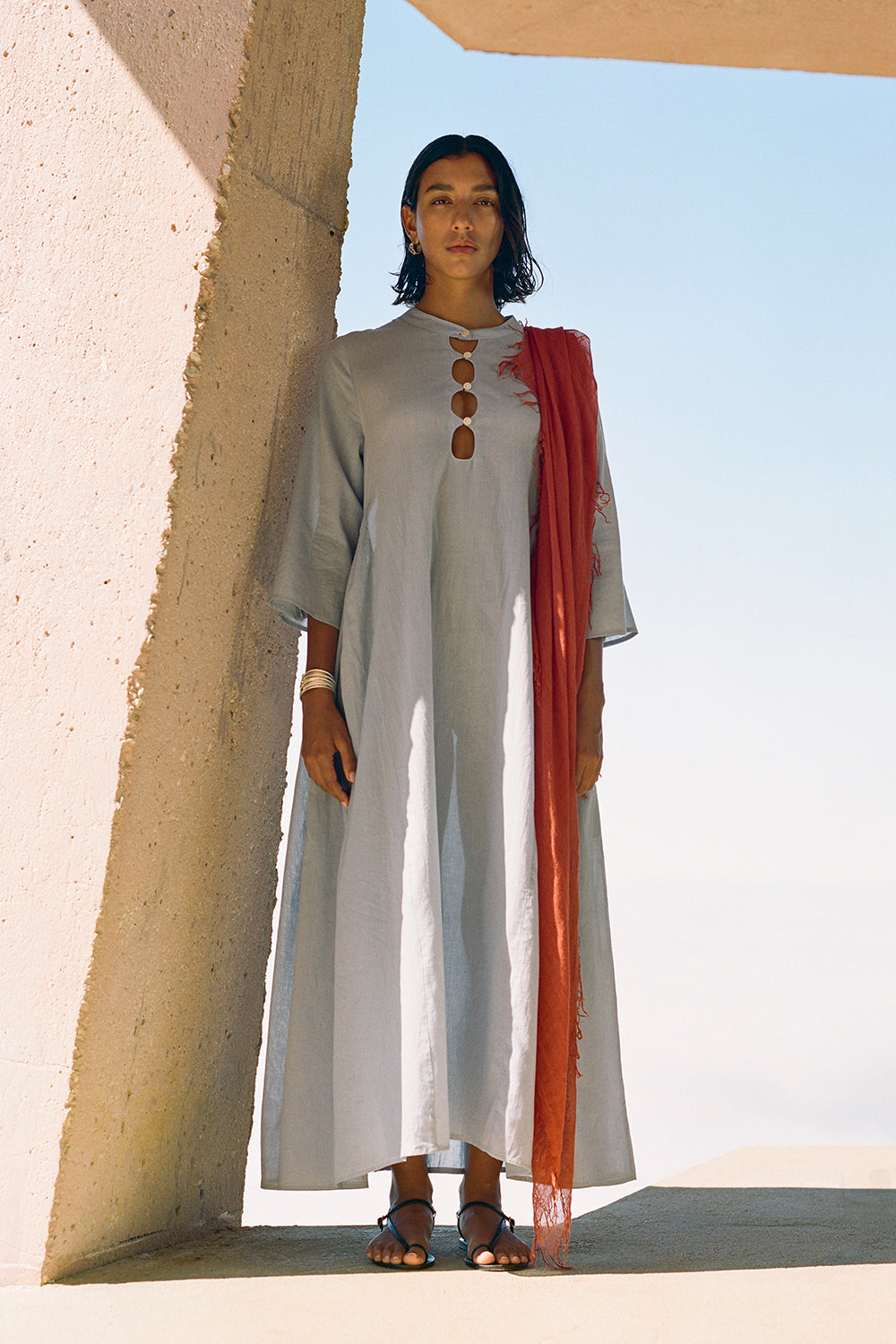 Our signature cashmere and silk blend scarf in a picante red hue. Super soft and lightweight with a fringed trim. This scarf is perfect for year-round wear.